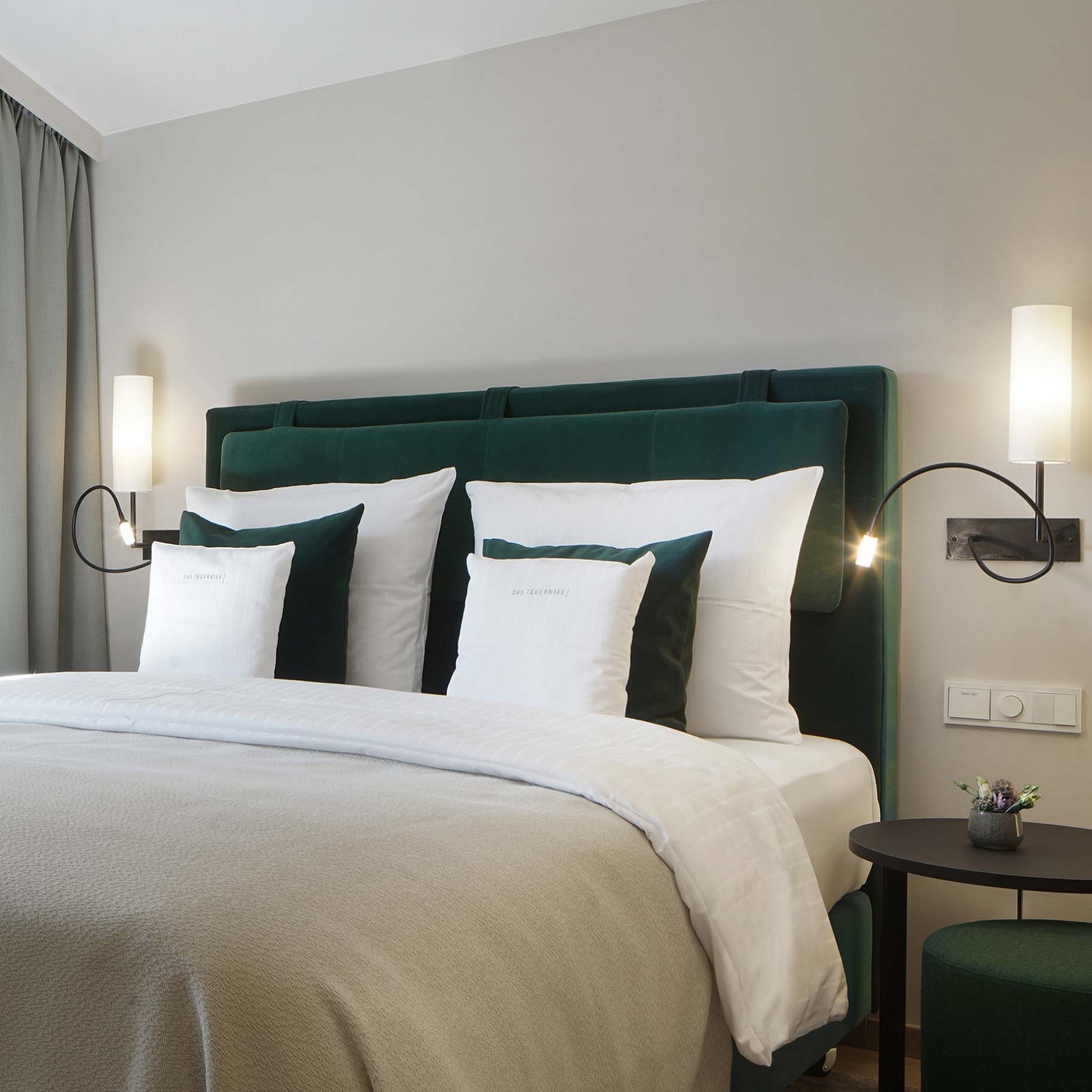 Elegant, gemütlich, besinnlich – ein Ort …für mich. In komfortabler Nähe zur Spa- und Wellnesslandschaft des Hauses lädt das Einzelzimmer als Ihr persönlicher Wohlfühlort zur kleinen Auszeit ein. Im Schlafbereich kreiert das smaragdgrüne Bett einen stilvollen Kontrast zur hellen, freundlichen Farbgebung, während das Bad mit seinem zeitgenössischen Design überzeugt.